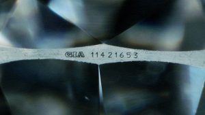 当店が販売する全てのダイヤモンドのガードル部分にGIA鑑定書番号が刻印されています。これにより世界に1つだけのダイヤモンドを証明しています。